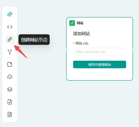 新建网站节点: 在工具栏中,点击小链条按钮,即可创建一个网站节点。