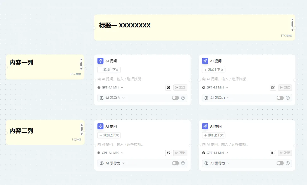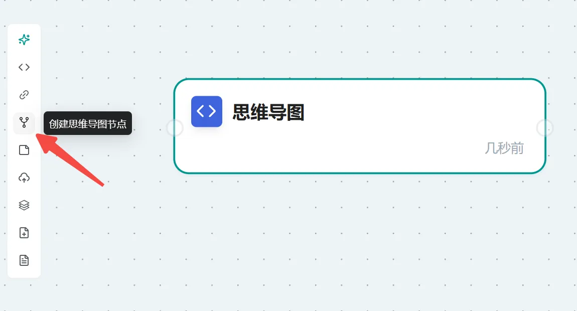 概念: 创建思维导图节点功能允许您在画布中插入交互式思维导图,以实现思维的可视化和组织。思维导图节点可以通过手动方式创建,也可以由 AI 直接生成。本质上,它是一个 Mind Map 小组件。