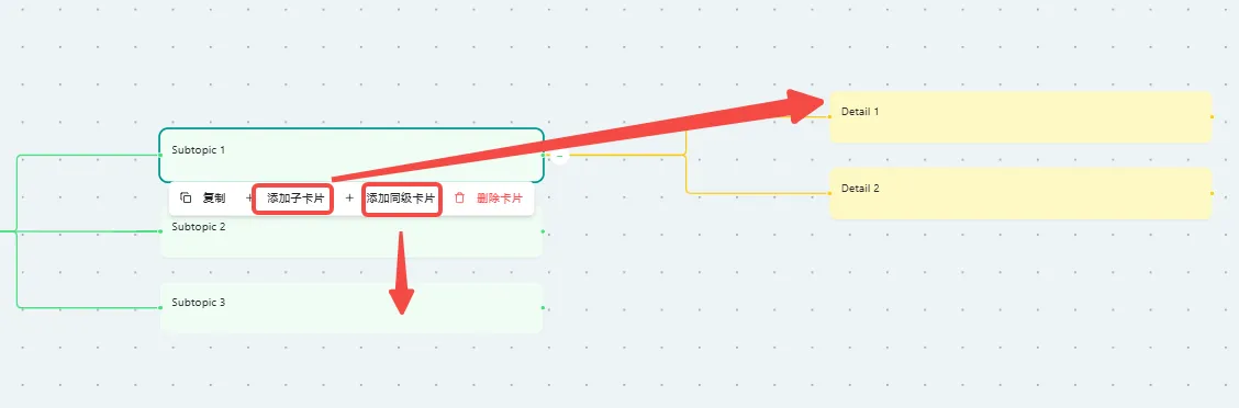 - 添加子卡片: 创建下一级分支。
