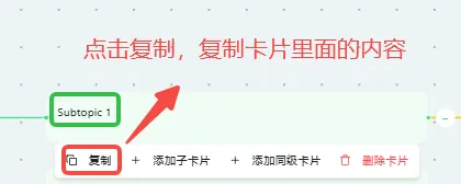 图:编辑分支,添加子卡片,创建下一级分支复制卡片内容: 点击复制按钮,可以将卡片内的内容复制到剪贴板,方便粘贴到其他位置。