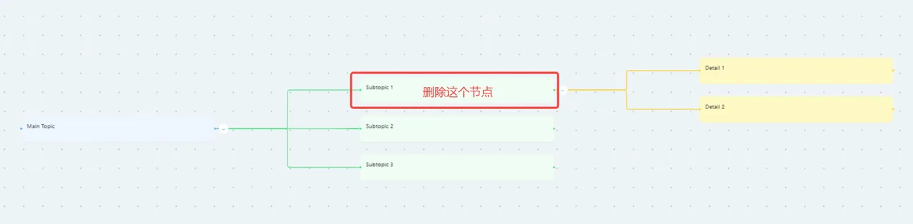 新建思维导图节点: 在工具栏中,点击连接拆分样式的按钮,即可创建一个思维导图节点。