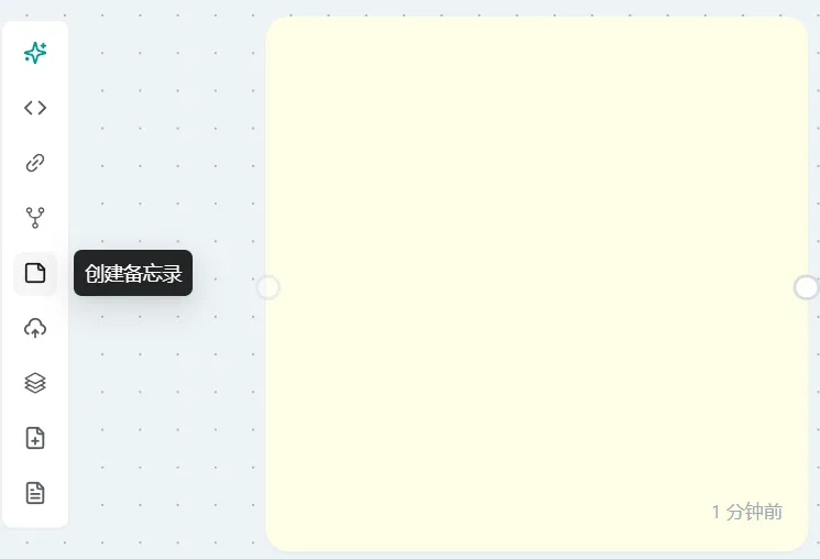 创建备忘录节点: 点击创建备忘录按钮,画布上会生成一个默认的浅黄色备忘录节点。