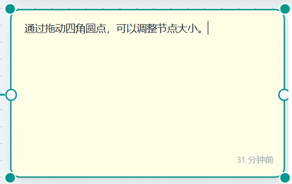 图:编辑备忘录节点内部,可以编辑内容调整备忘录大小: 通过拖动备忘录四角的圆点,您可以调整备忘录节点的大小。