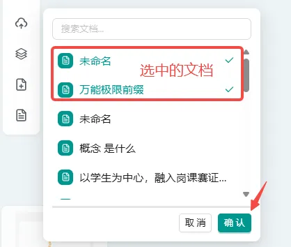 - 选中文档后,点击右下角“确认”按钮。